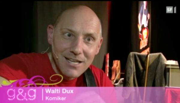Seit über 30 Jahren ist Walti Dux auf vielen Bühnen der Schweiz und Deutschlands unterwegs. Vom kleinsten Privatauftritt mit sieben Bankern bis zu seinem grössten Auftritt am Schlageropenair Flumserberg mit 11'000 Zuschauern hat er alles erlebt. Er begeisterte das Publikum viele Male im Schmidt Theater in Hamburg, trat in Berlin und Hannover auf, war Kreuzfahrt-Comedian und Veranstalter von grossen Anlässen. Zusammen mit seiner Ehefrau Marisa begrüsste er während zwölf Jahren gegen 500 Bands am ACOUSTIC SONG CONTEST. Für ihr COMEDY SOFA flogen S Duxe während sieben Jahren deutsche Comedians nach Uster und Zürich ein, und über 1200 Kinder durften an ihrem KIDS ON STAGE während sechs Jahren auf grossen Bühnen auftreten. Wahrlich eine intensive und erfolgreiche Zeit - aber mit ein paar Jahrringen mehr im Gepäck geht es jetzt auf zu neuen Ufern.